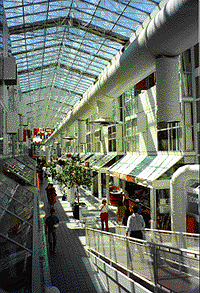 The first, Barton Myers’ work at the Univeristy of Alberta. The HUB. [10] A decidedly Modern Building, Myers envisioned an interpretation of a European street, which tied University of Alberta buildings together, in a harsh environment. Attending University when it is forty d. below, in Northern Alberta can be harsh. A precursor to Mixed Use, and not New Urbanist, it incorporated many concepts by encouraging community, walkable connections while obviating the issue of weather.