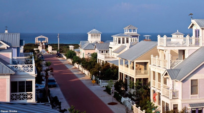 New Urbanism’s best early examples of community are Seaside, Florida and later, Celebration, Florida. The former, Seaside is the product of Andrés Duany, and his firm Plater-Zyberk ( DPZ .) Well documented and the stage for numerous films and documentaries, Seaside draws heavily on traditional architectural elements, a diverse scale and a higher density, mixed use and walkable community. The latter is an extension of the Disney Corporation’s interest in designed communities eschewing nostalgia, early American values and a sense of scale. Much of their architectural elements may find inspiration in Christopher Alexander’s work on architectural elements and their interrelationships.